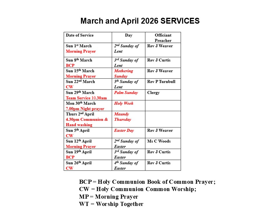 We are grateful to Rev John Weaver who often leads our services (feedback on his talks, welcome to John via email: jdweaverswbc@yahoo.co.uk
