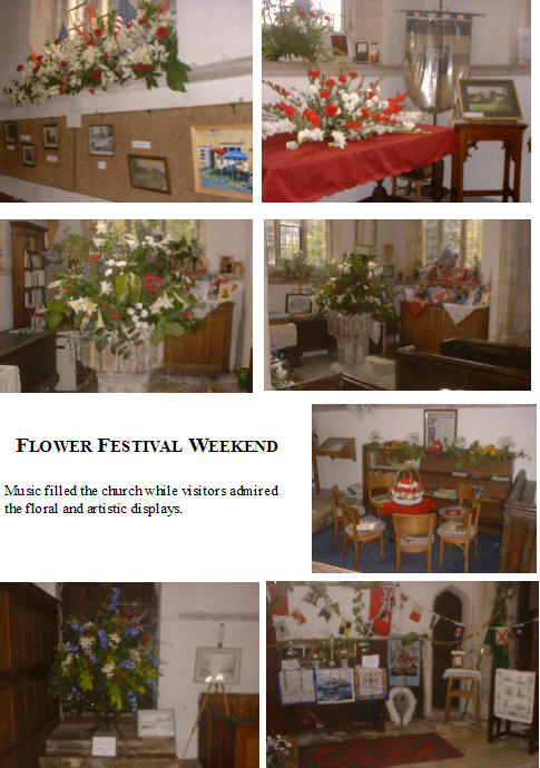 Floral arrangements were by Mrs. Cheadle, Mrs. Dodwell, Mrs Freeman and Mrs. Robinson, Mrs. Garon, Mrs Halton, Mrs Harrison, Mrs. Jones, Mrs. Lewis, Lady Luke, Mrs. Ormond, Mrs. Shakespeare, Mrs. Sturridge, Mrs. Swift, Mrs. Wheeler and Mrs. Zaradin. The many activities of both the village of Odell and the church of All Saints’ were represented: the Parish Council, the Village Hall Committee, the Fete Committee, the Womens Institute, Yelnow Farm, Aid For Romania, Meeting Point, Sunday School and the Church Musicians.